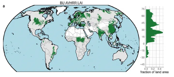 Abstract Global greening trends have been widely reported based on long-term remote sensing data of terrestrial ecosystems. Typically, a hypothesis test is performed for each grid cell; this leads to multiple hypothesis testing and false positive trend detection. We reanalyze global greening and account for this issue with a novel statistical method that allows robust inference on greening regions. Based on leaf area index (LAI) data, our methods reduce the detected greening from 35.2% to 15.3% of the terrestrial land surface; this reduction is most notable in nonwoody vegetation. Our results confirm several greening regions (China, India, Europe, Sahel, North America, Brazil, and Siberia), that are also supported by independent data products. We also report evidence for an increasing seasonal amplitude in LAI north of 35textasciicircum$∘$N. Considering the widespread use of spatially replicated trend tests in global change research, we recommend adopting the proposed multiple testing procedure to control false positive outcomes. , Plain Language Summary Using satellite data, recent studies have detected an increase in vegetation greenness around the globe. These studies attribute this vegetation increase to different factors, such as warming or land use change. However, we argue that the commonly used analysis method is detecting too many regions with trends. In this work, we reanalyze vegetation data using the leaf area index, which measures the area occupied by leaves in any given area. With our refined methods, we too detect greening regions around the world, however these regions are smaller and less abundant. Our research introduces a step in the statistical analysis that increases the reliability of the detected vegetation greening. This can help establish more consensus on what the main contributing factors are for the observed vegetation increase. , Key Points Many studies have consistently reported on global greening trends, but repeatedly without rigorous significance testing Although global greening has been overestimated, significant greening can still be rigorously detected We observe an increase in the seasonal amplitude of leaf area index around the glob Keywords global greening textbarleaf area index (LAI) textbar multiple testing textbarstatistical significance
